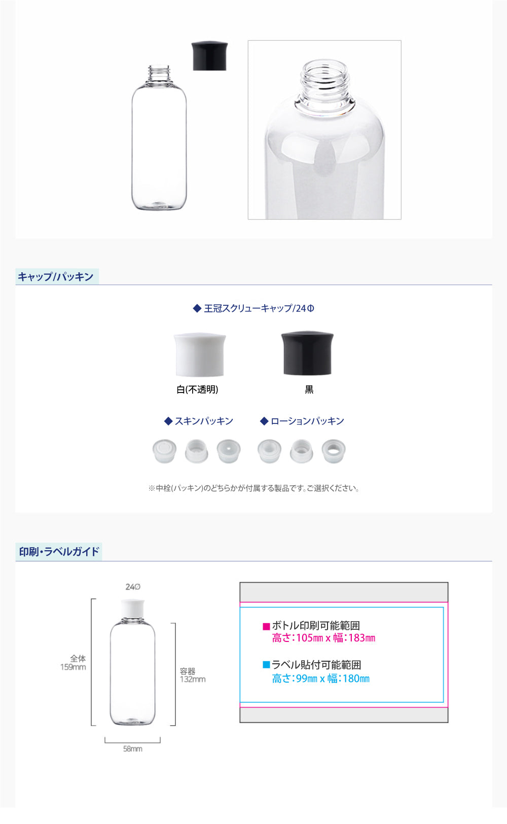 容量:300ml / 口径 : 24φ / 高さ:159mm / 直径 : 58mm