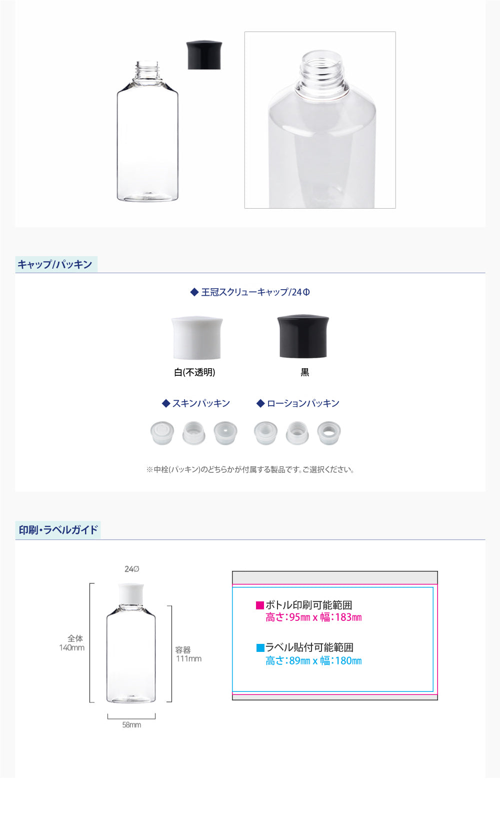 L) 王冠スクリューキャップボトル(中栓付) CA250ml_PET