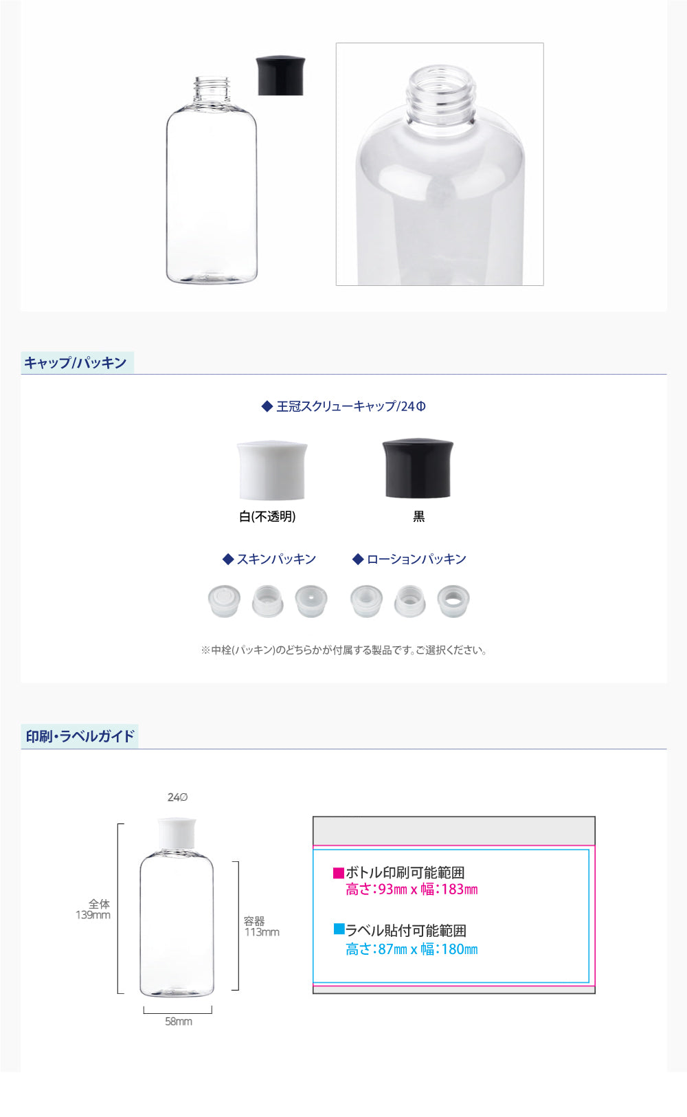 容量:250ml / 口径 : 24φ / 高さ:139mm / 直径 : 58mm