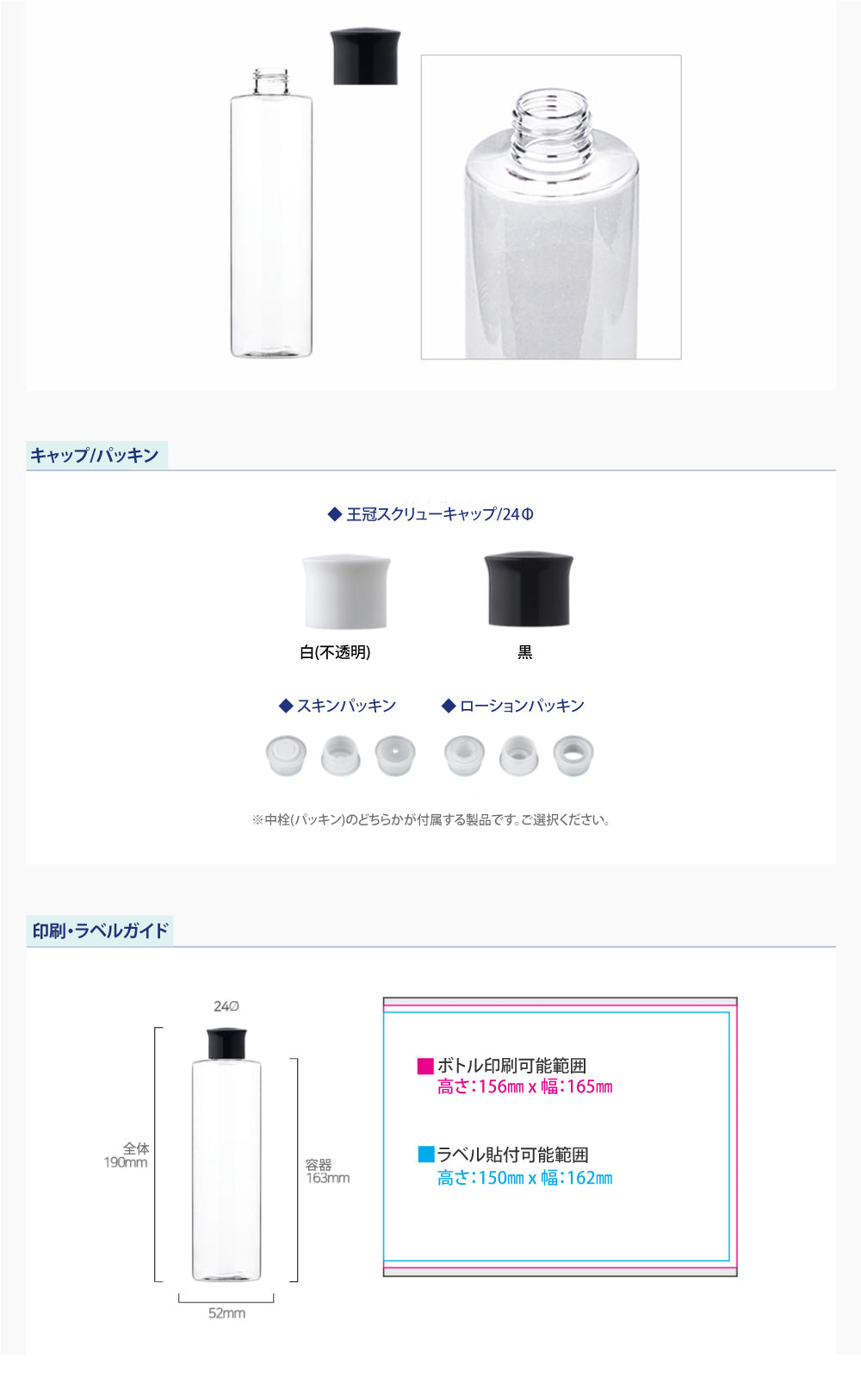 容量:300ml / 口径 : 24φ / 高さ:190mm / 直径 : 52mm
