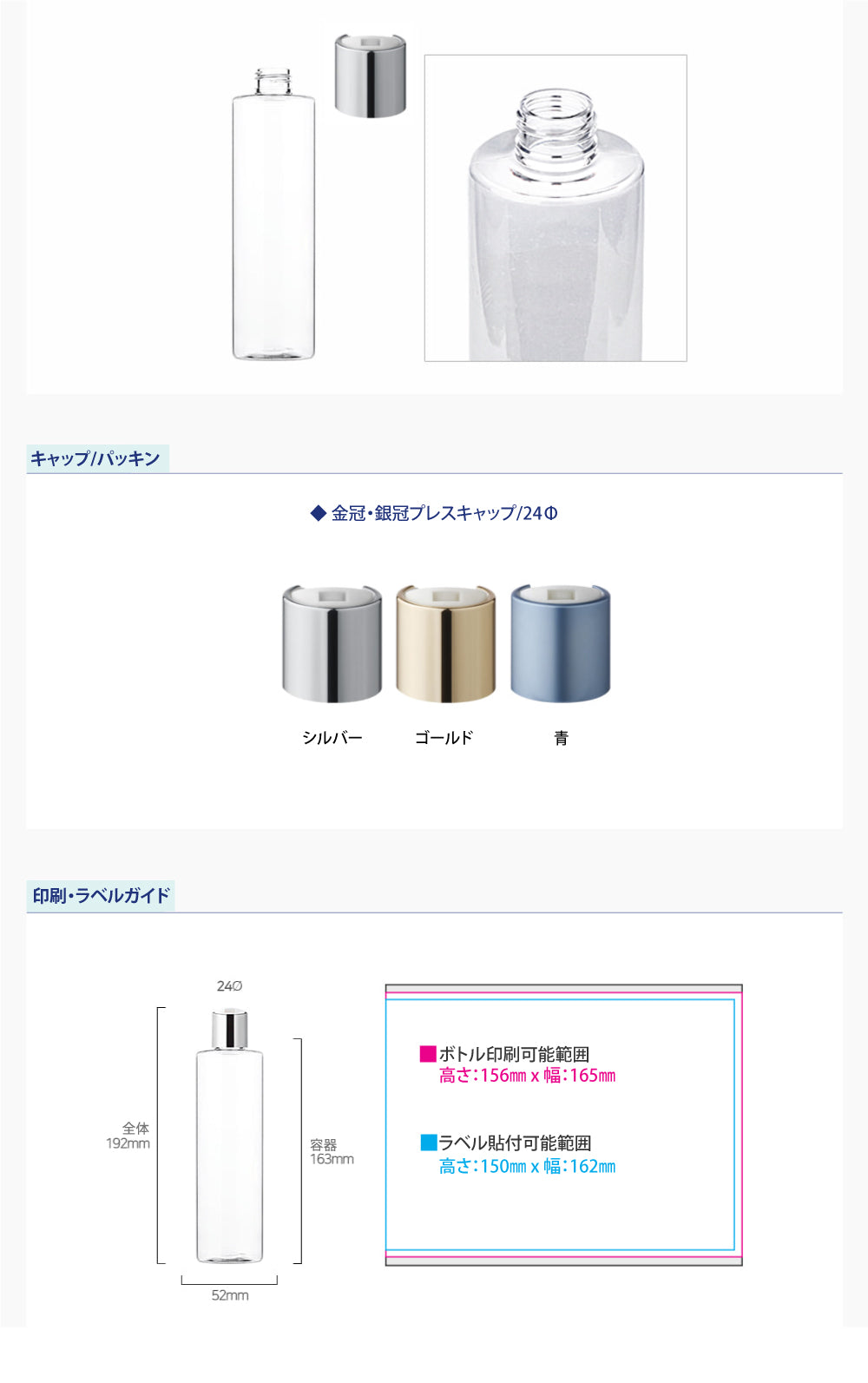 容量:300ml / 口径 : 24φ / 高さ:192mm / 直径 : 52mm