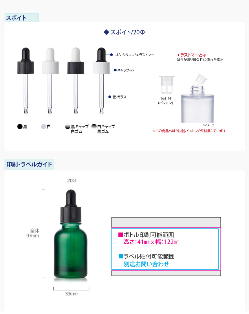 容量:30ml / 口径 : 20φ / 高さ:97mm / 直径 : 39mm