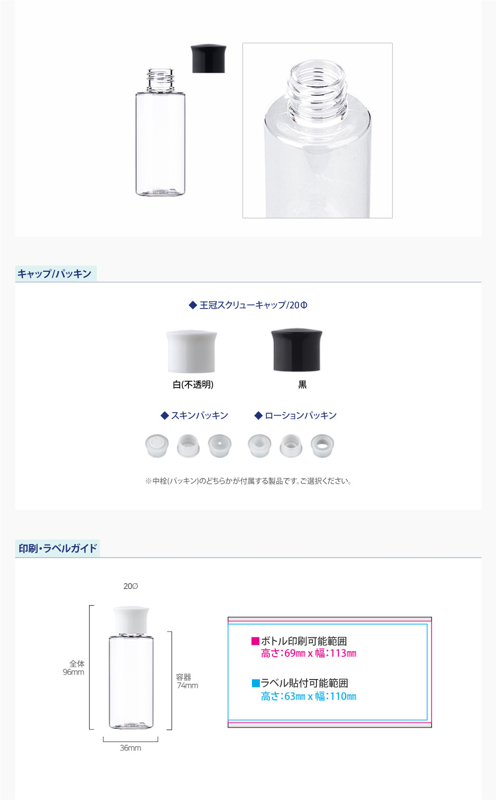 容量:60ml / 口径 : 20φ / 高さ:96mm / 直径 : 36mm