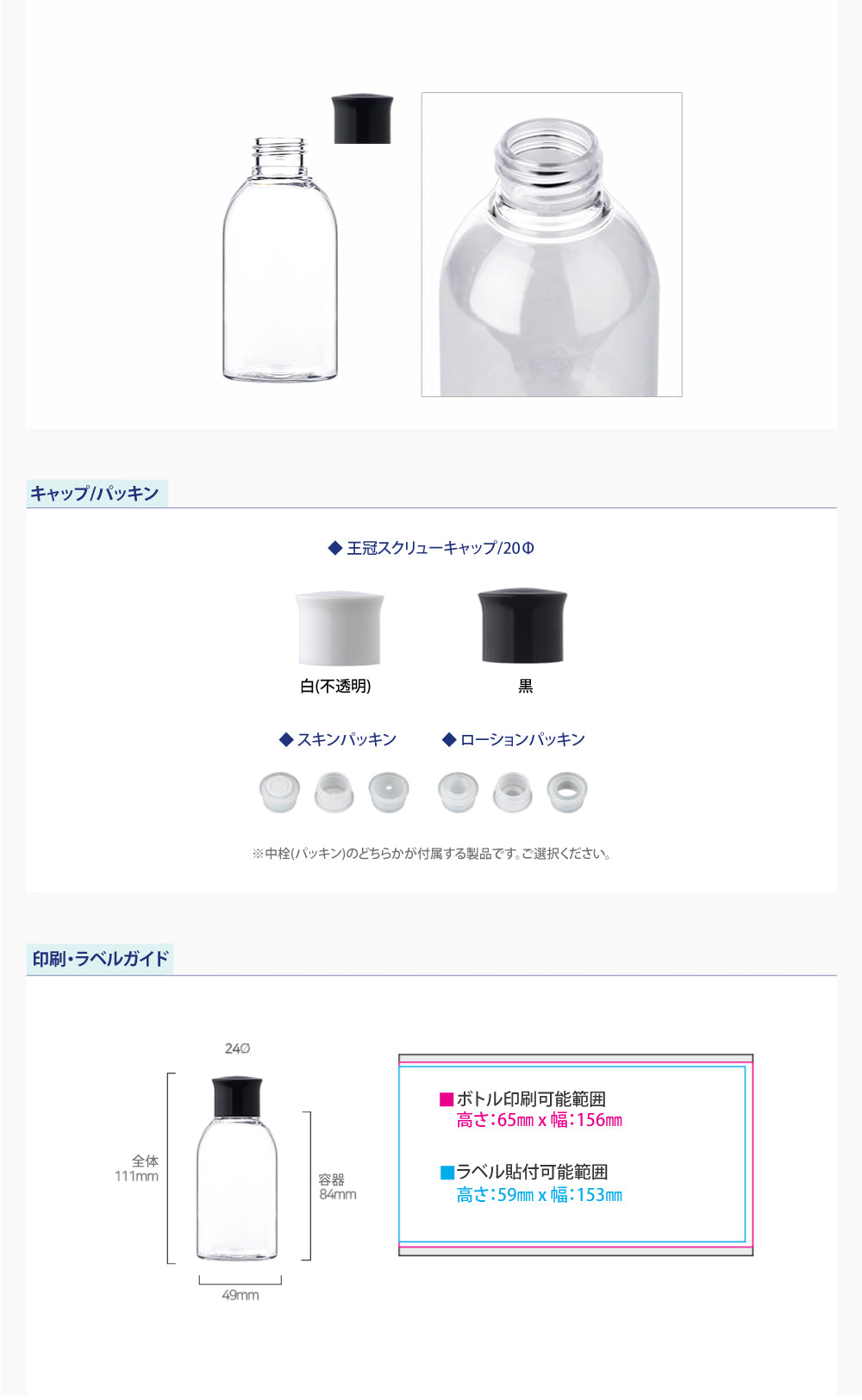 容量:120ml / 口径 : 24φ / 高さ:111mm / 直径 : 49mm