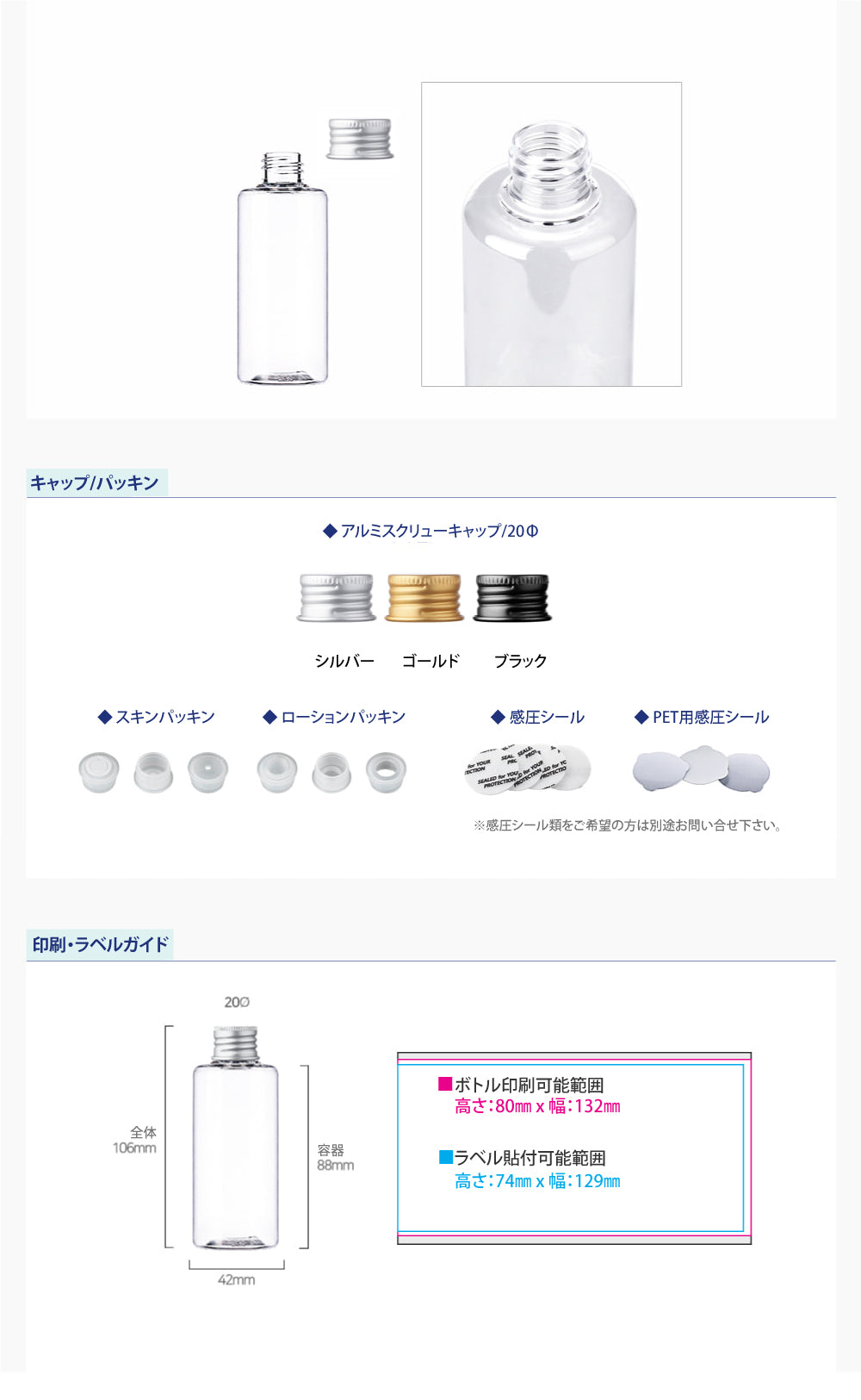 容量:100ml / 口径 : 20φ / 高さ:106mm / 直径 : 42mm