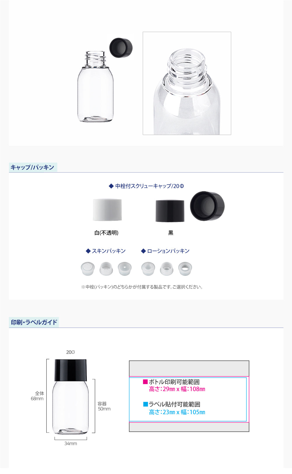 容量:30ml / 口径 : 20φ / 高さ:68mm / 直径 : 34mm