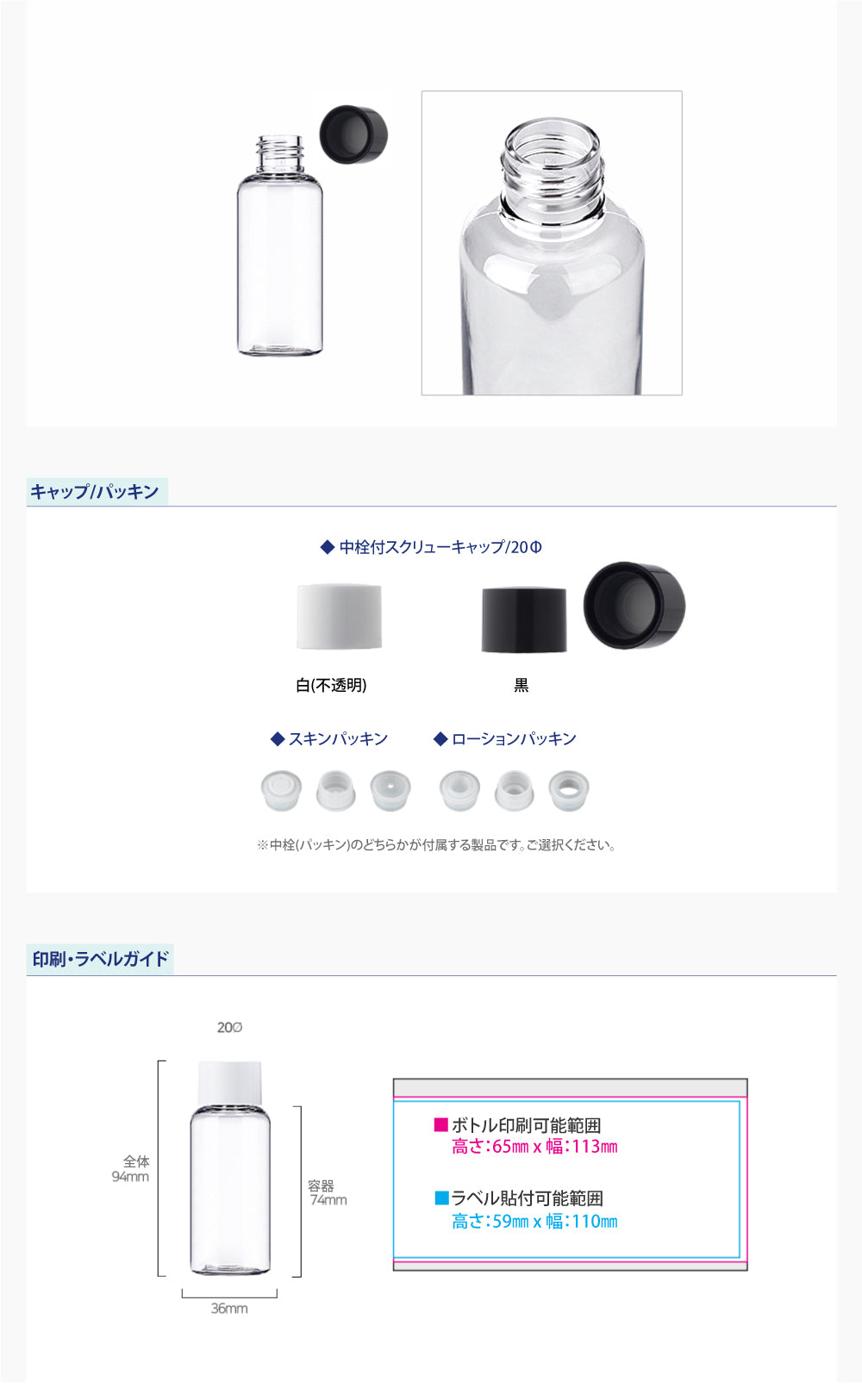 容量:60ml / 口径 : 20φ / 高さ:94mm / 直径 : 36mm