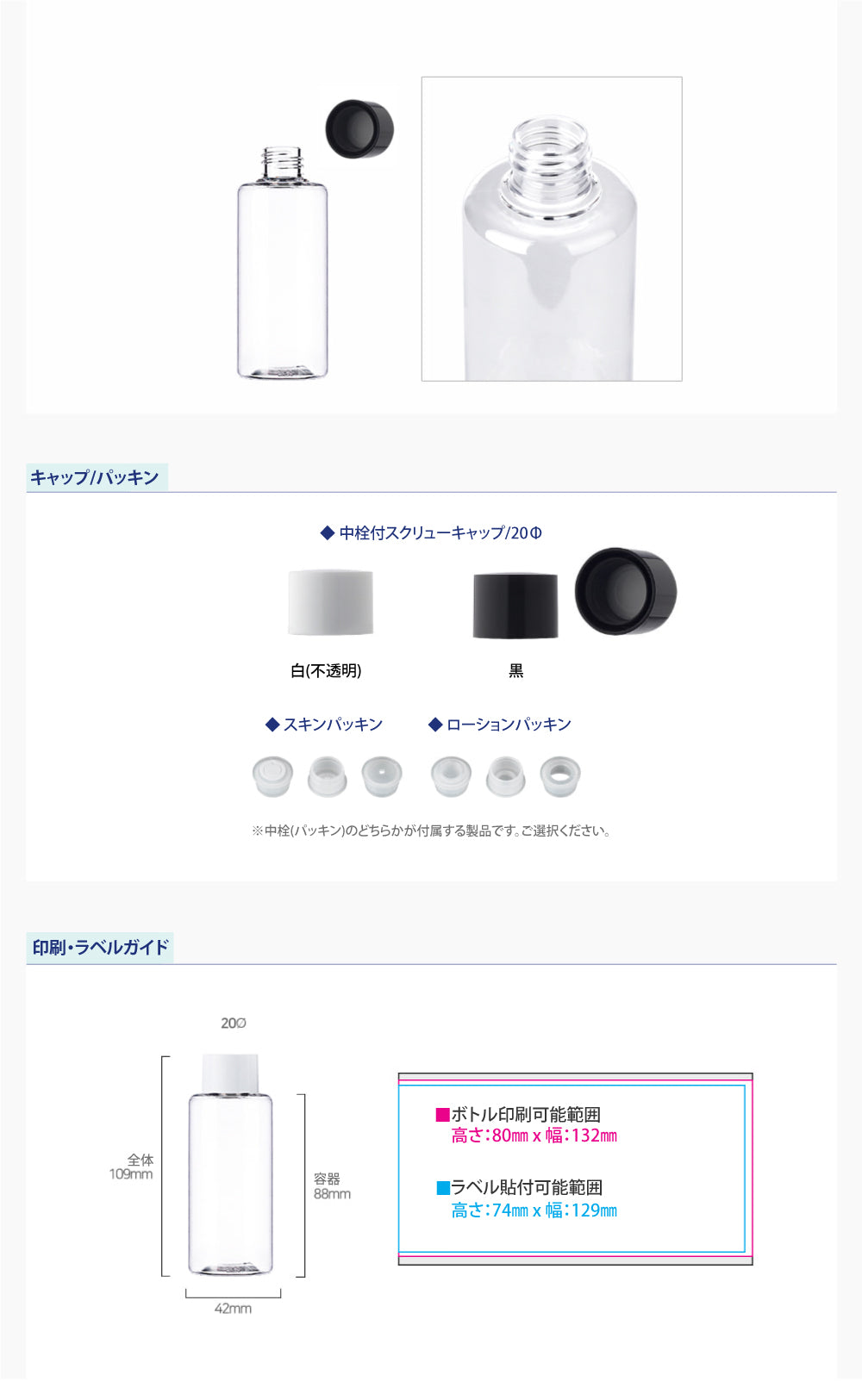 容量:100ml / 口径 : 20φ / 高さ:109mm / 直径 : 42mm