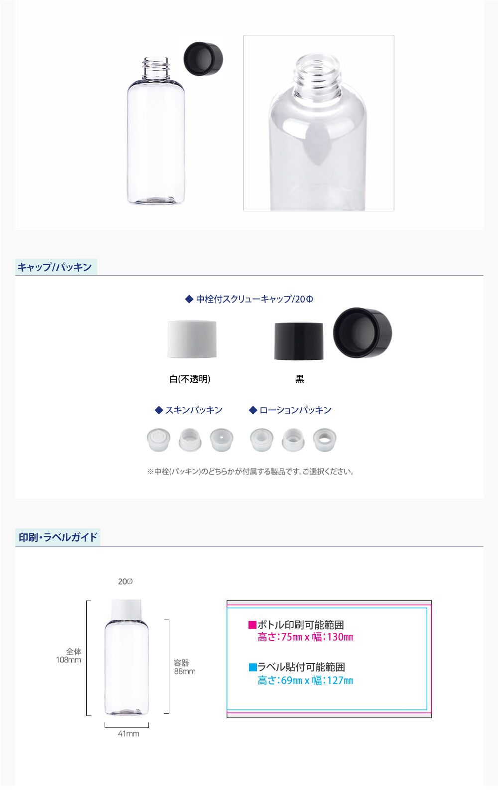 容量:100ml / 口径 : 20φ / 高さ:108mm / 直径 : 41mm