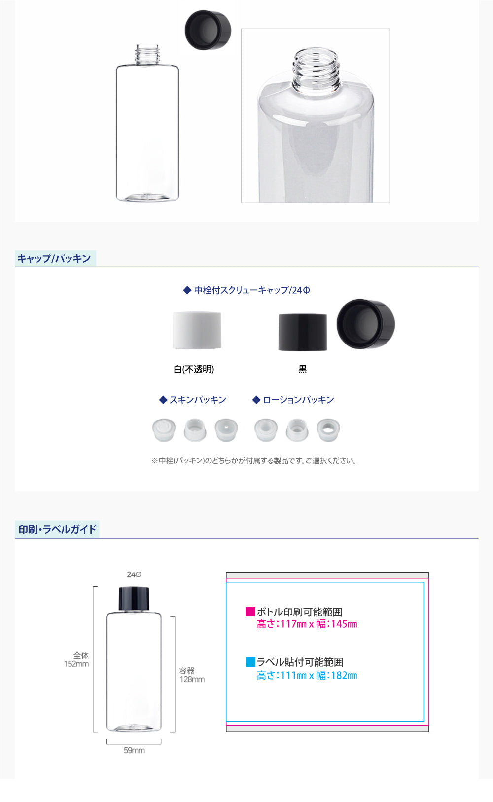 容量:300ml / 口径 : 24φ / 高さ:152mm / 直径 : 59mm