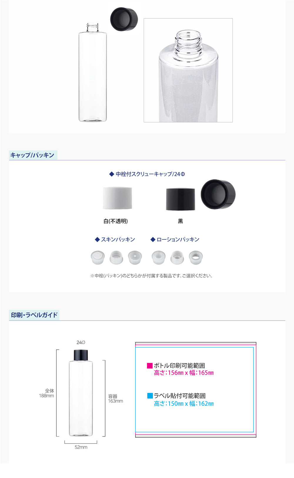 容量:300ml / 口径 : 24φ / 高さ:188mm / 直径 : 52mm