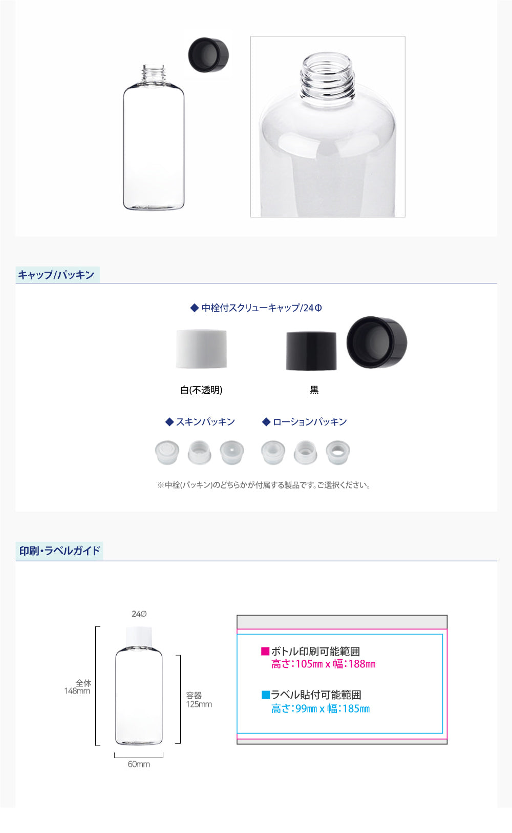 容量:300ml / 口径 : 24φ / 高さ:148mm / 直径 : 60mm