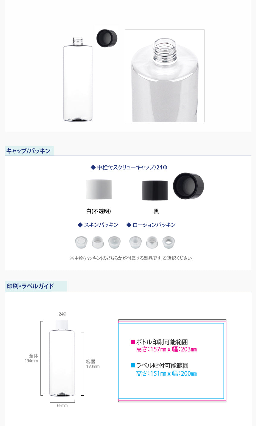 容量:500ml / 口径 : 24φ / 高さ:194mm / 直径 : 65mm