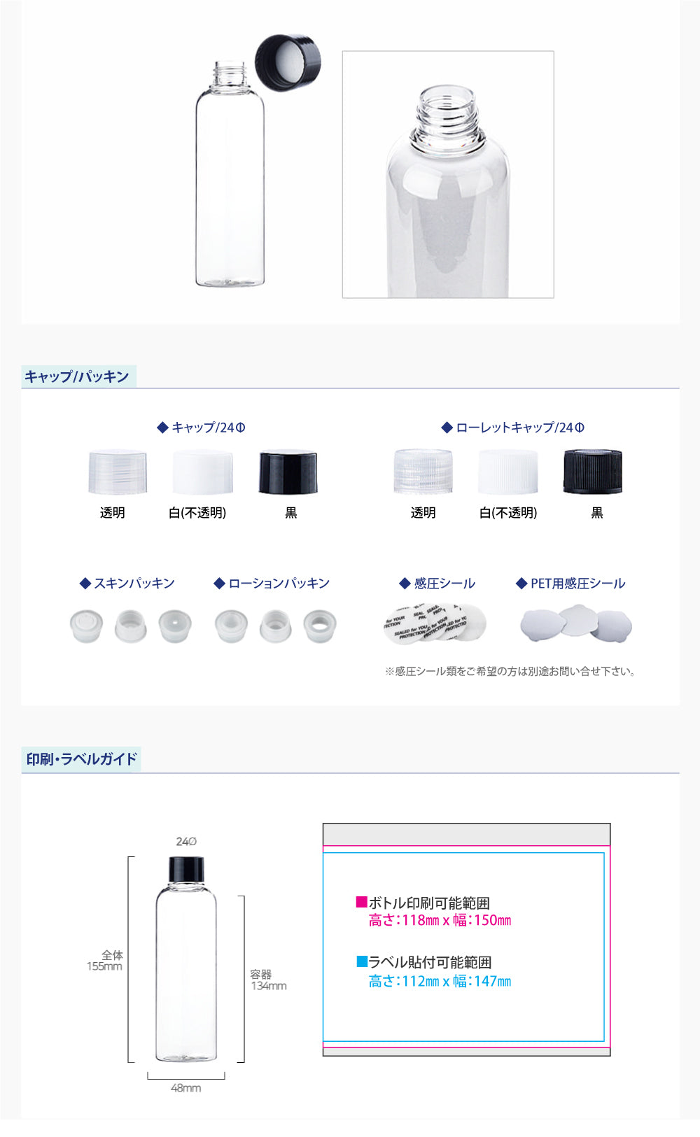 容量:200ml / 口径 : 24φ / 高さ:155mm / 直径 : 48mm