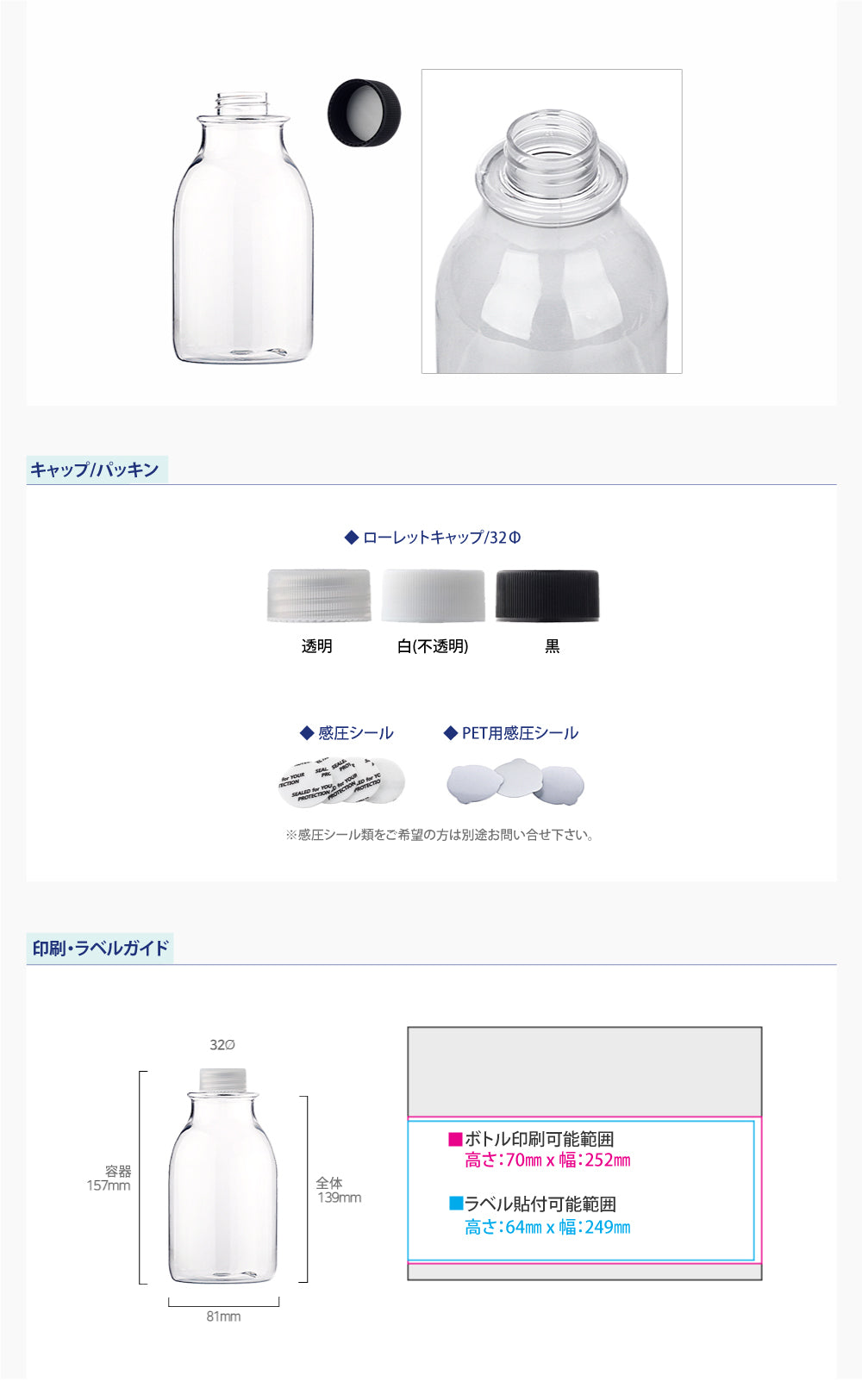 容量:550ml / 口径 : 32φ / 高さ:157mm / 直径 : 81mm