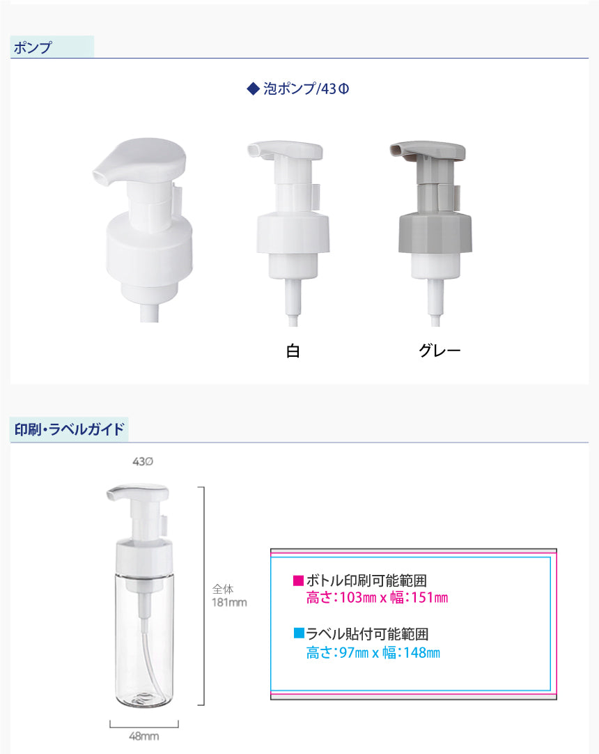 ※グレーポンプは20,000個からの注文生産で承ります。ご希望の場合は別途御見積させていただきます。