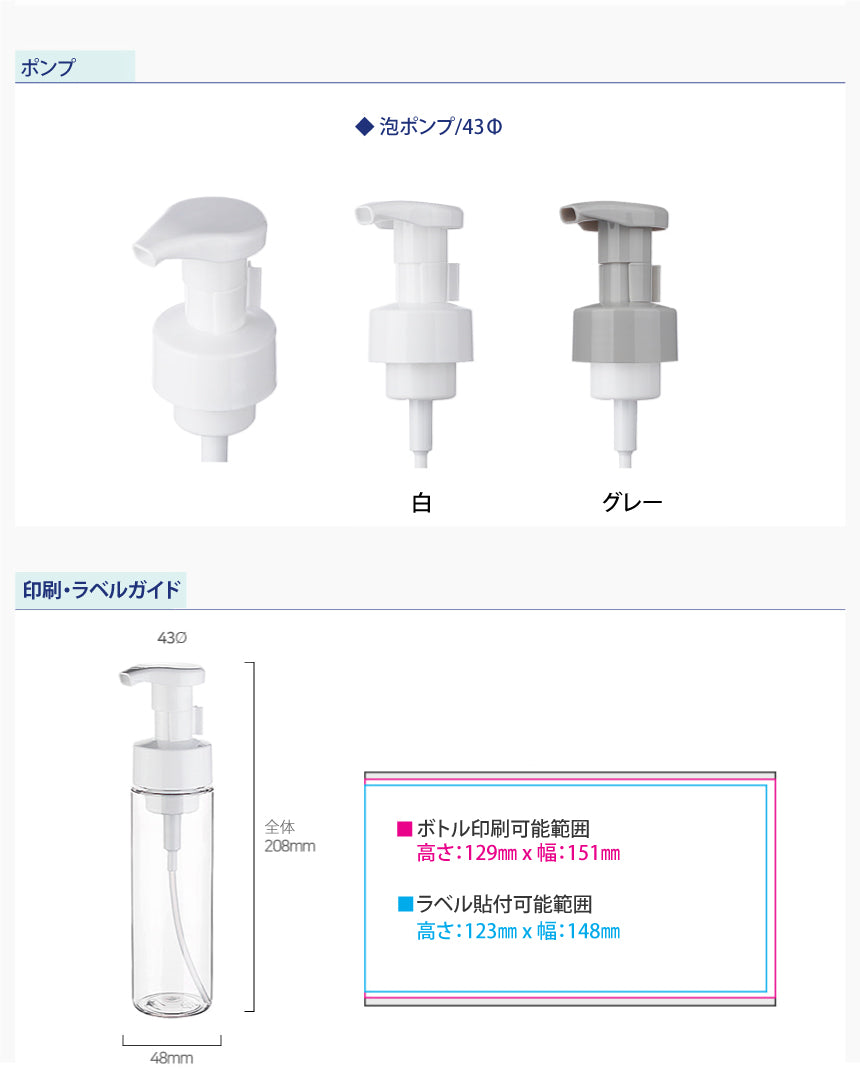 ※グレーポンプは20,000個からの注文生産で承ります。ご希望の場合は別途御見積させていただきます。