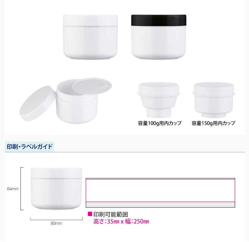 容量:100g, 150g / 高さ:64mm / 直径 : 80mm