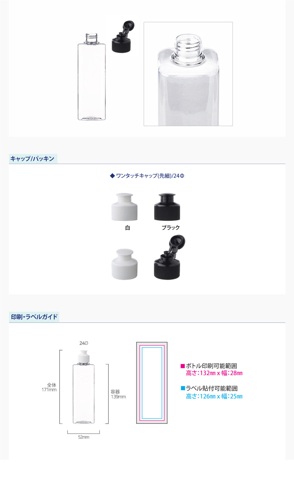 容量:300ml / 口径 : 24φ / 高さ:171mm / 幅 : 52mm
