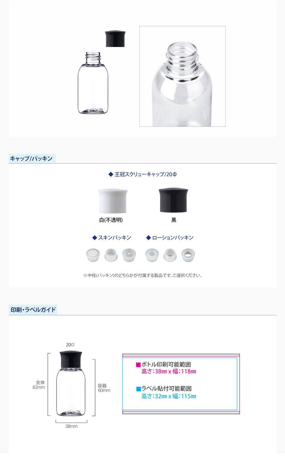 容量:50ml / 口径 : 20φ / 高さ:82mm / 直径 : 38mm
