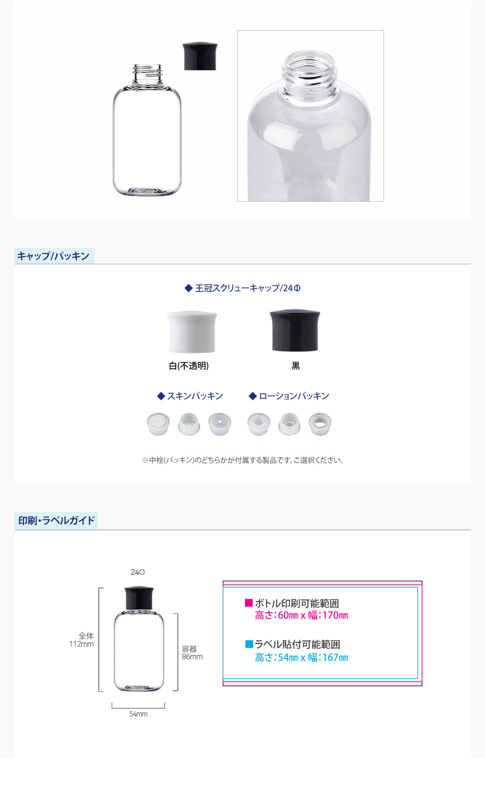容量:150ml / 口径 : 24φ / 高さ:112mm / 直径 : 54mm