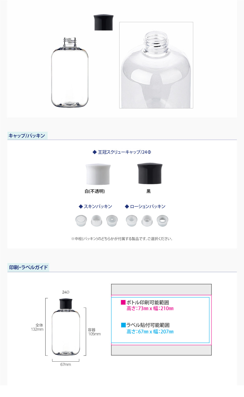 容量:300ml / 口径 : 24φ / 高さ:132mm / 直径 : 67mm