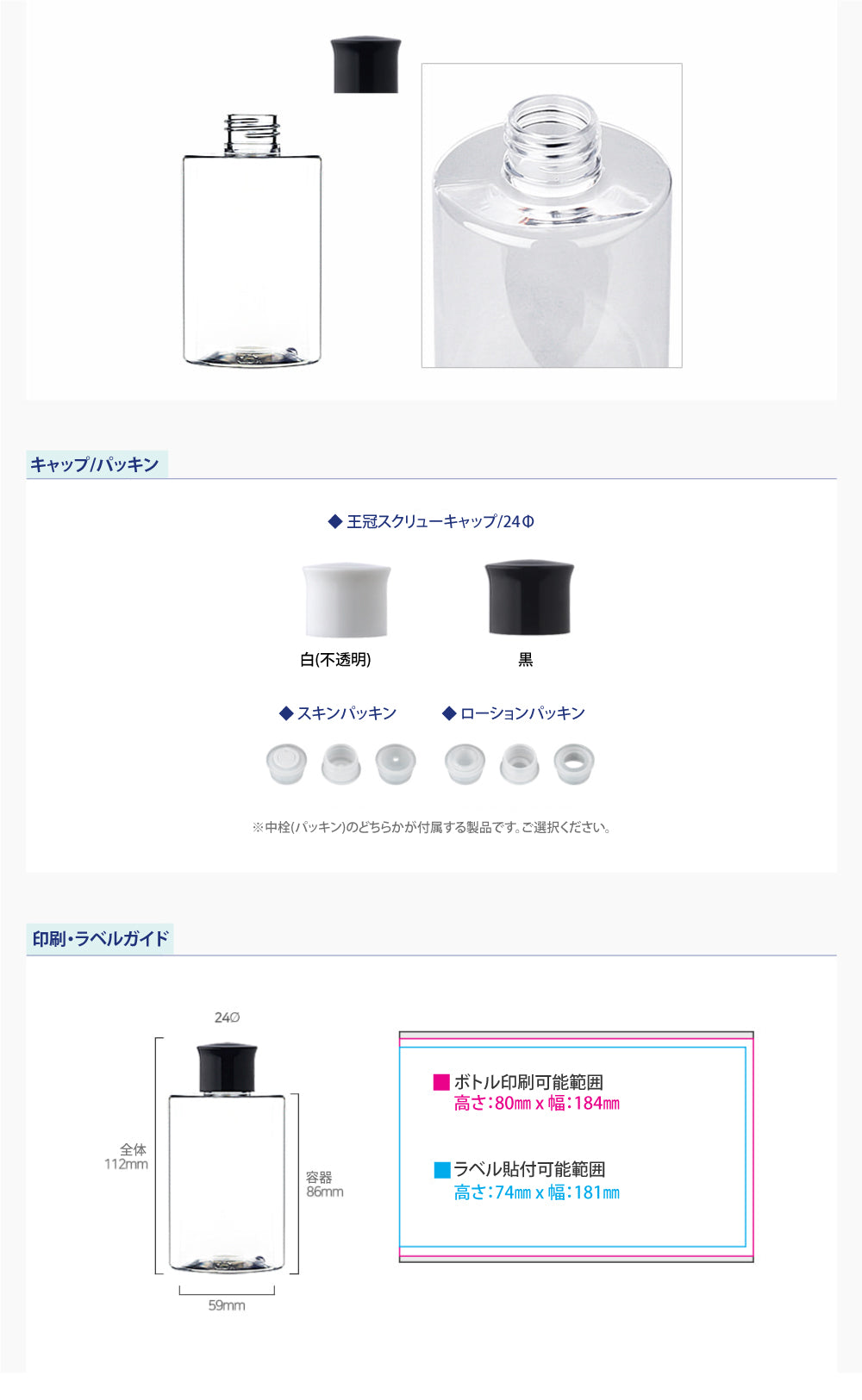 容量:200ml / 口径 : 24φ / 高さ:112mm / 直径 : 59mm
