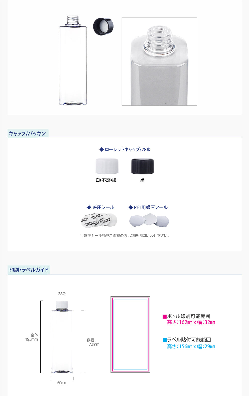 容量:500ml / 口径 : 28φ / 高さ:195mm / 幅 : 60mm