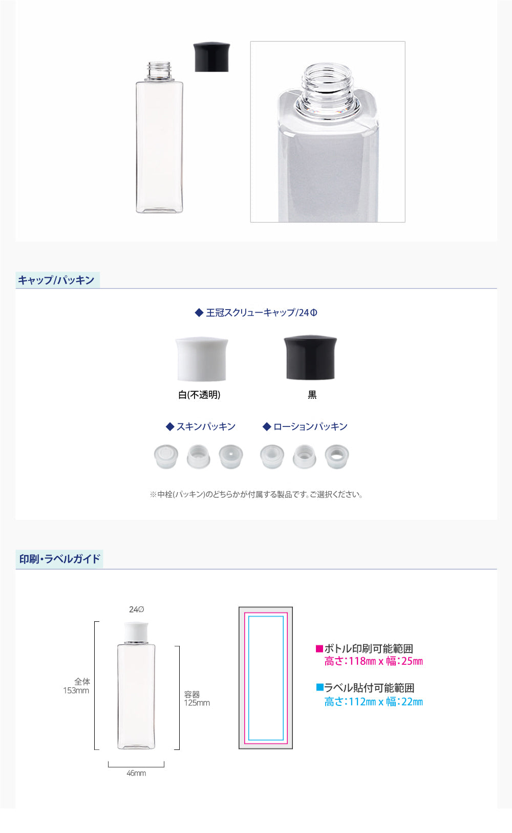 容量:200ml / 口径 : 24φ / 高さ:153mm / 幅 : 46mm