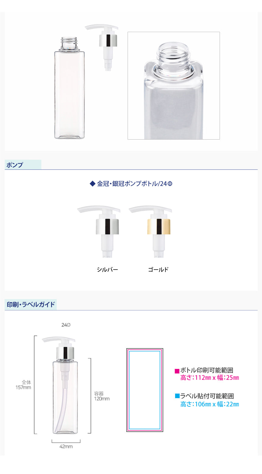 L) 金冠・銀冠ポンプボトル(角型) S150ml_PET