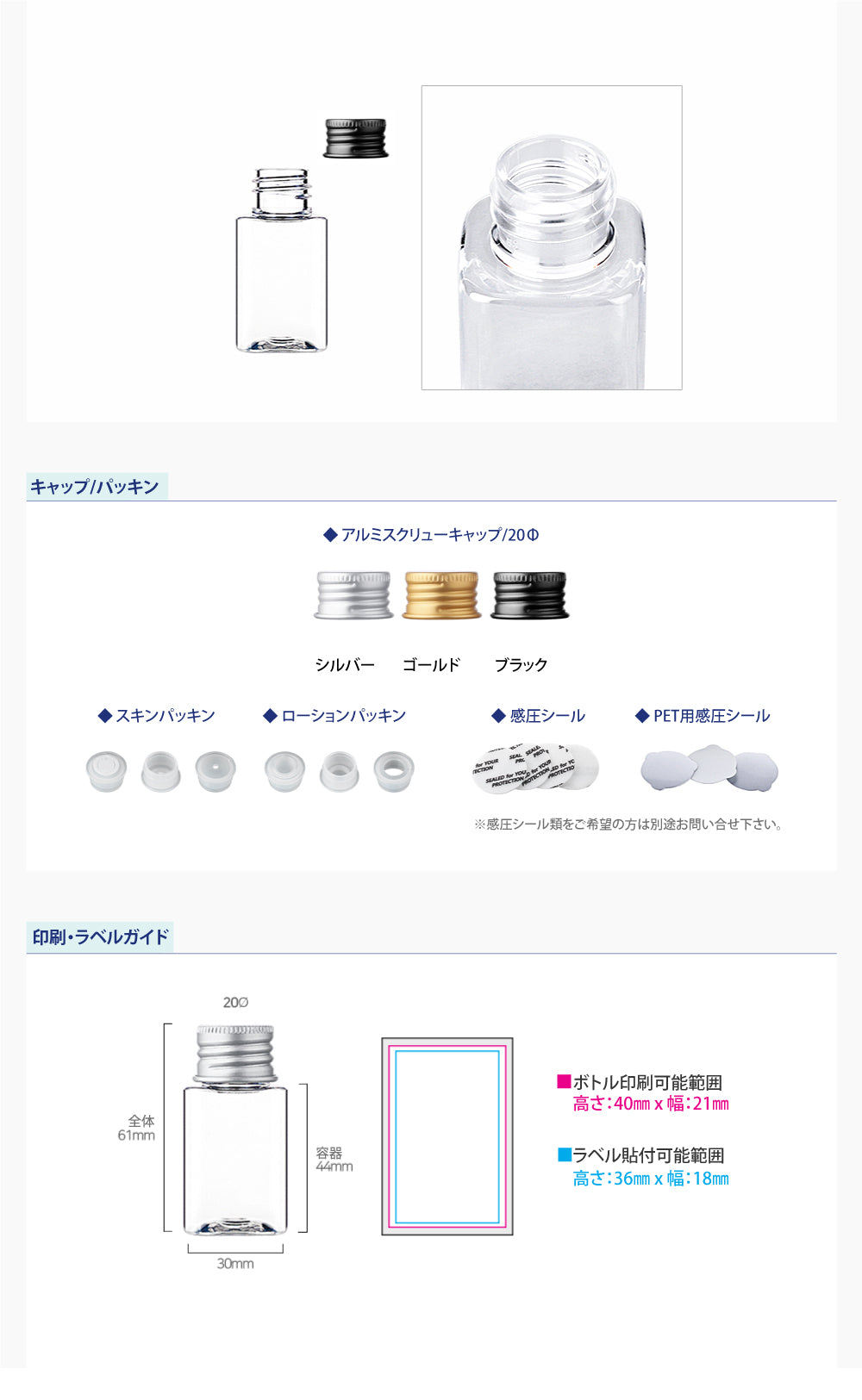容量:30ml / 口径 : 20φ / 高さ:61mm / 幅 : 30mm