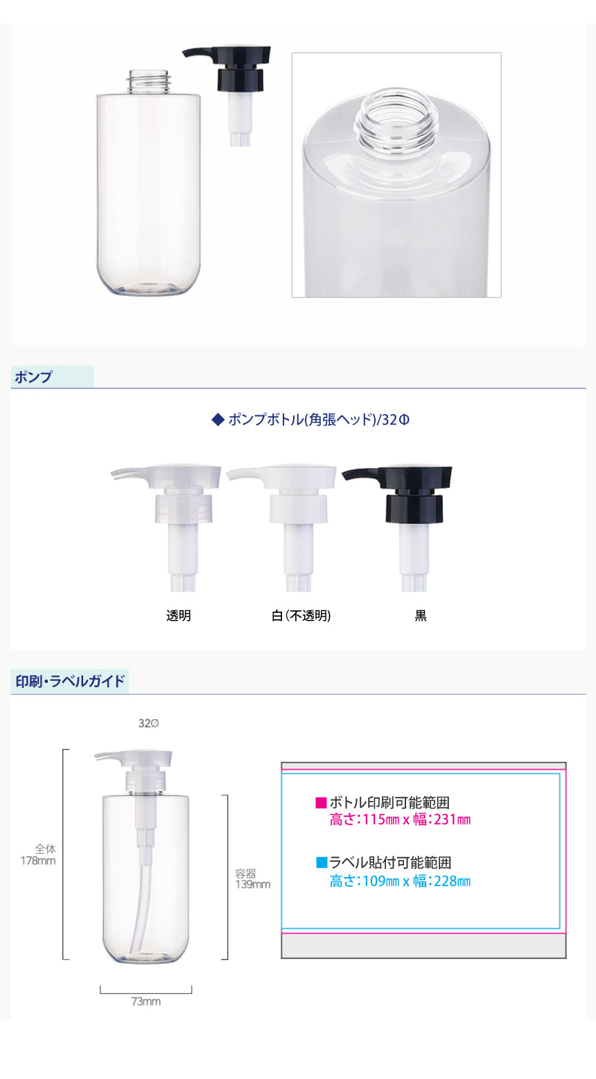 L) ポンプボトル(角張ヘッド) CU500ml_PET