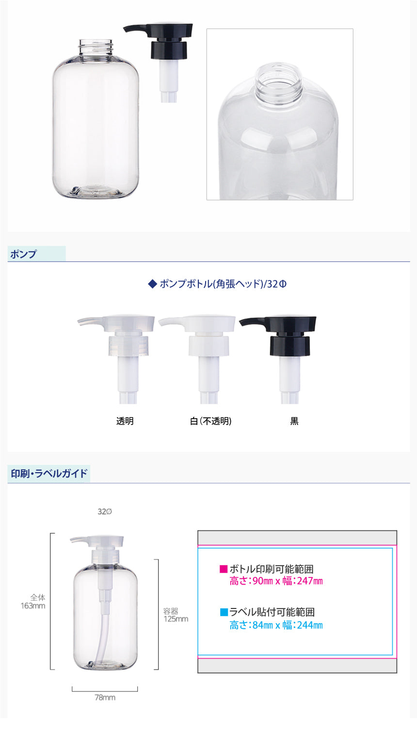 L) ポンプボトル(角張ヘッド) CO500ml_PET