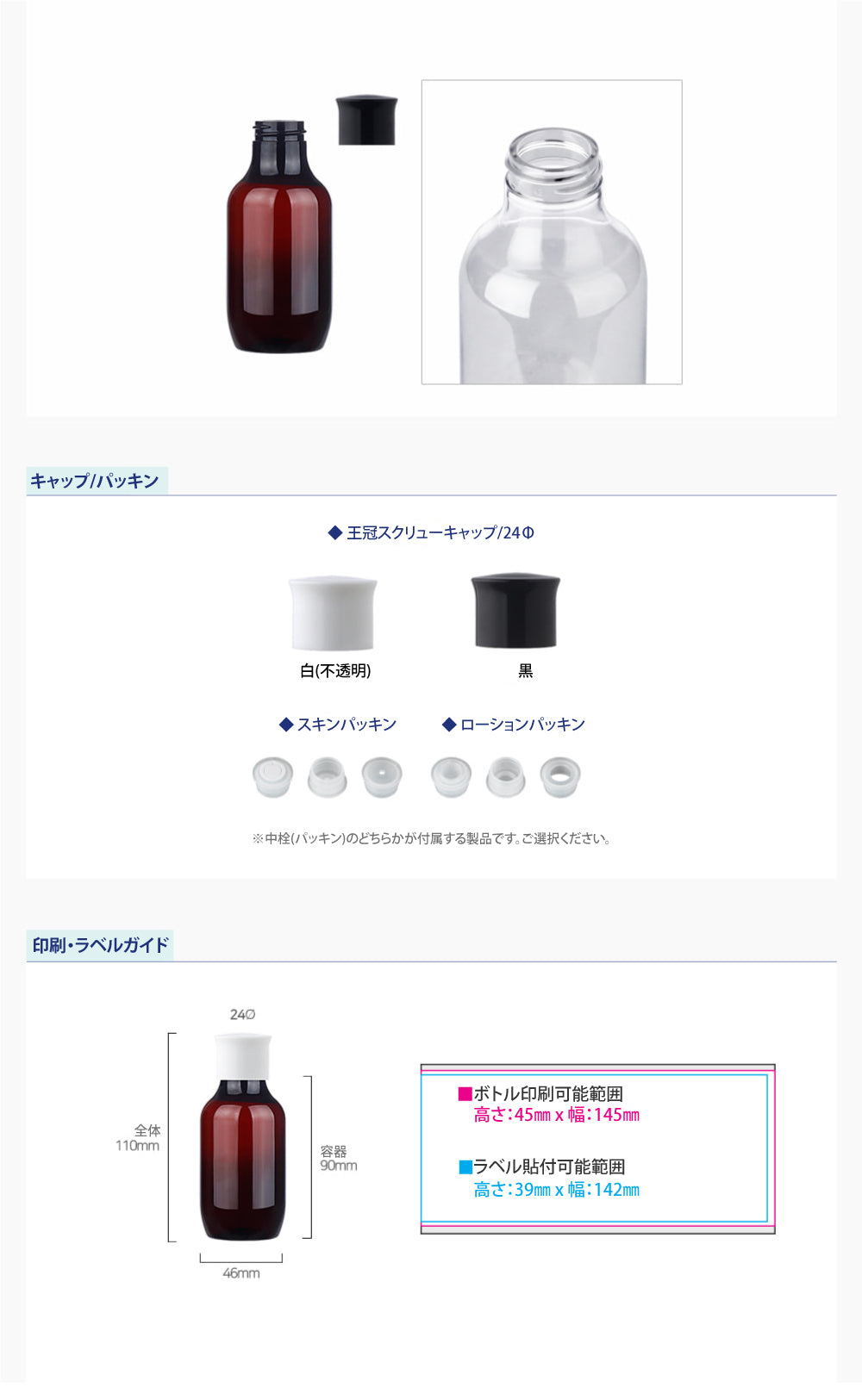 容量:100ml / 口径 : 24φ / 高さ:110mm / 直径 : 46mm