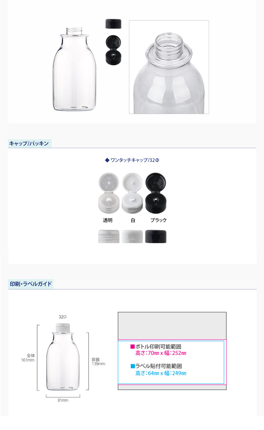 容量:550ml / 口径 : 32φ / 高さ:161mm / 直径 : 81mm