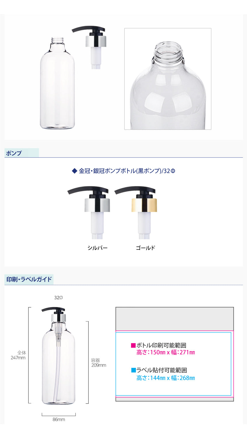 L) 金冠・銀冠ポンプボトル(黒ポンプ) CW1000ml_PET
