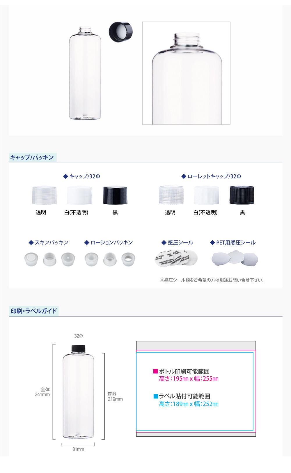 容量:1000ml / 口径 : 32φ / 高さ:241mm / 直径 : 81mm