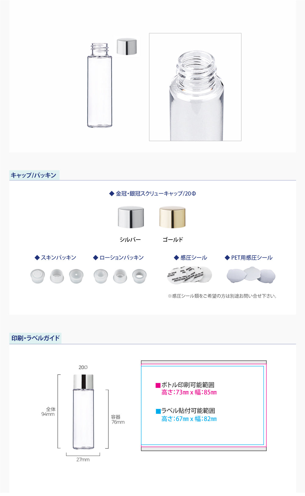 容量:30ml / 口径 : 20φ / 高さ:94mm / 直径 : 27mm