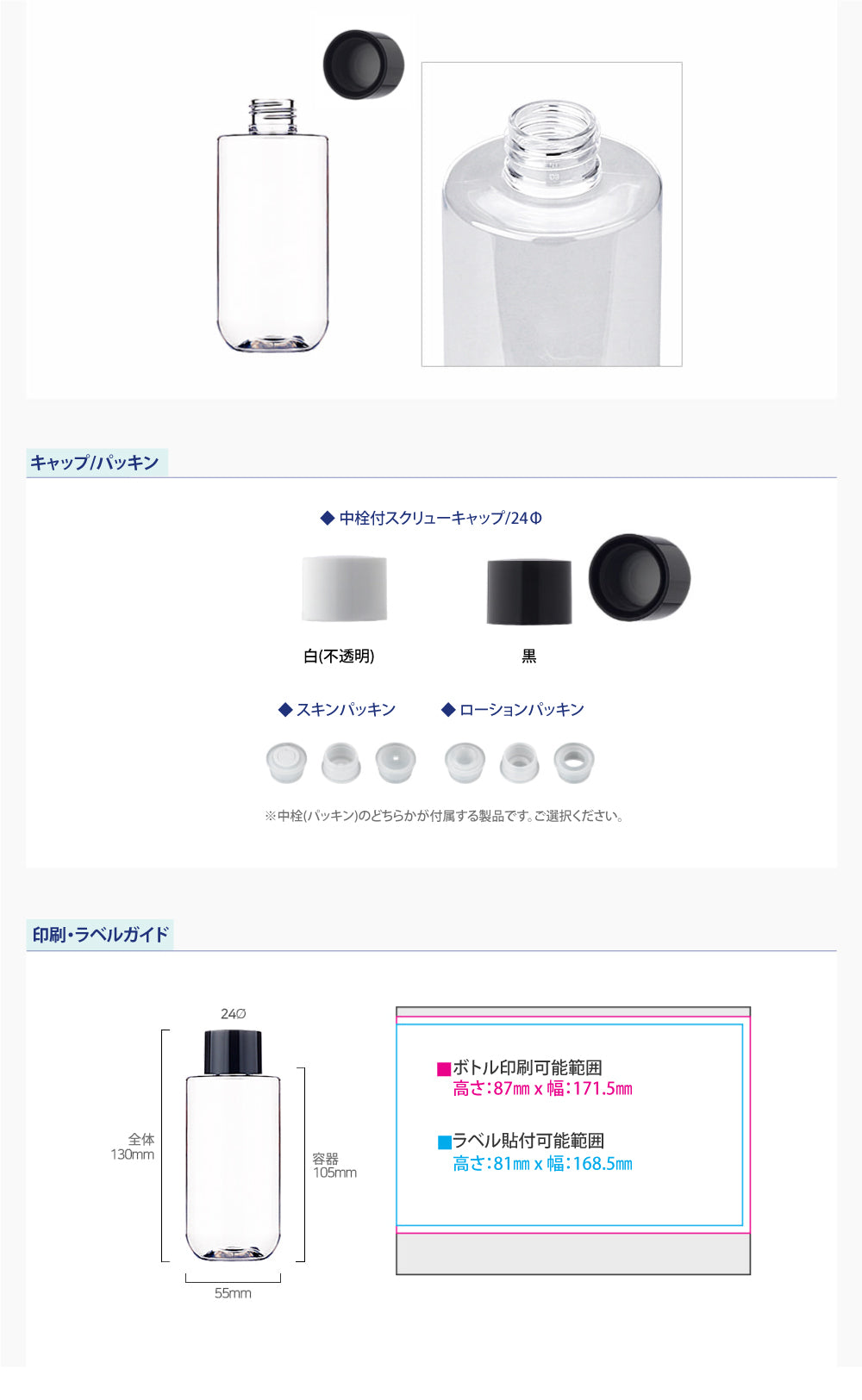 容量:200ml / 口径 : 24φ / 高さ:130mm / 直径 : 55mm