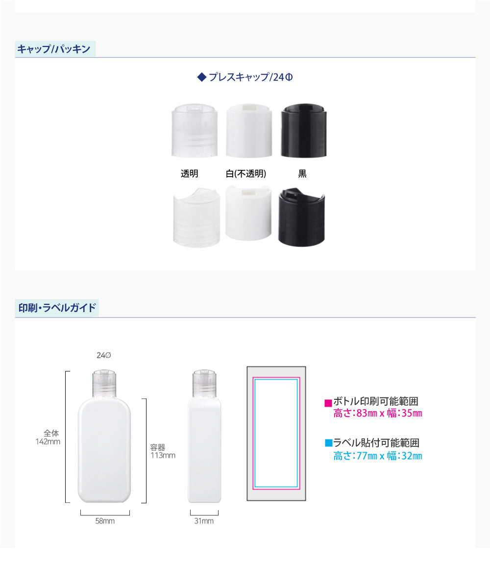L) プレスキャップボトル(スクエア) SR150ml_PET