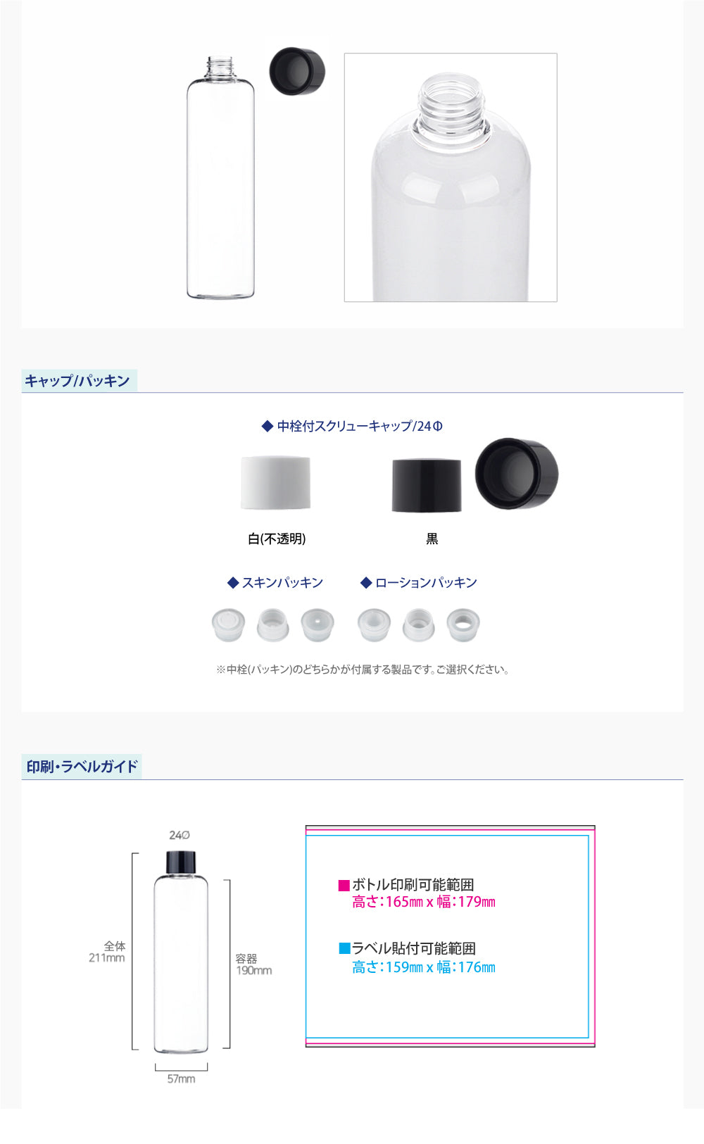 容量:410ml / 口径 : 24φ / 高さ:211mm / 直径 : 57mm
