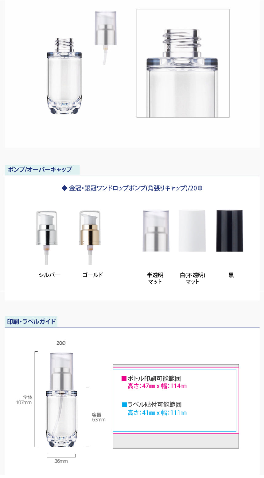 容量:30ml / 口径 : 20φ / 高さ:107mm / 直径 : 36mm
