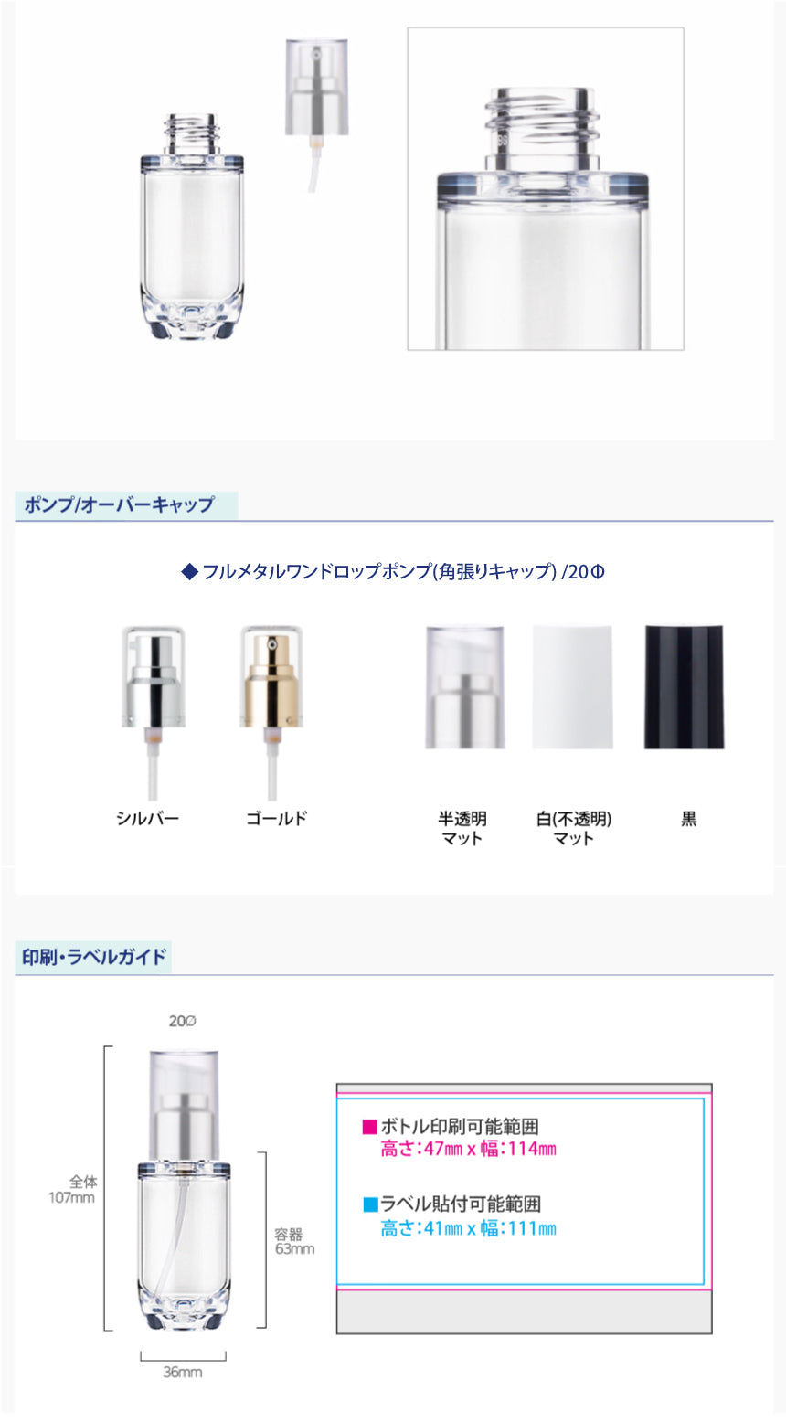 容量:30ml / 口径 : 20φ / 高さ:107mm / 直径 : 36mm