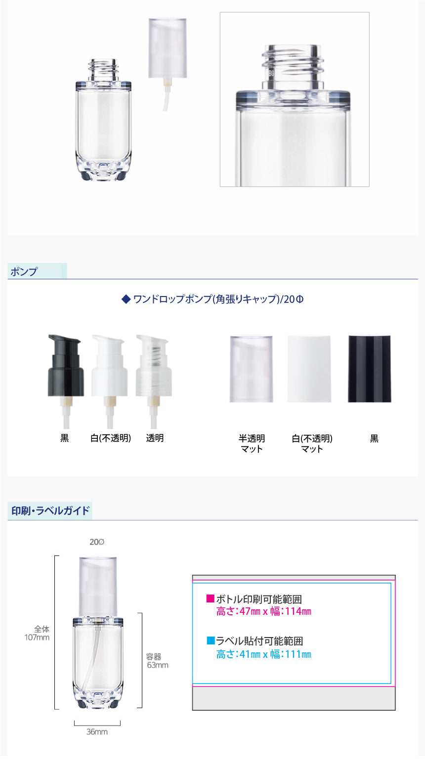 容量:30ml / 口径 : 20φ / 高さ:107mm / 直径 : 36mm