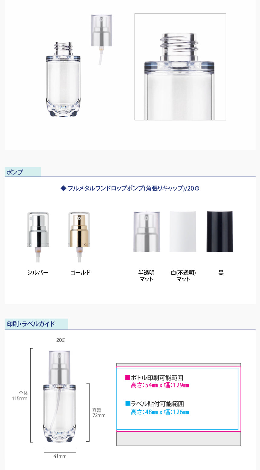 容量:50ml / 口径 : 20φ / 高さ:115mm / 直径 : 41mm