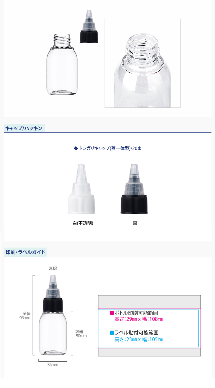 L) トンガリキャップ(蓋一体型-T) CD30ml_PET