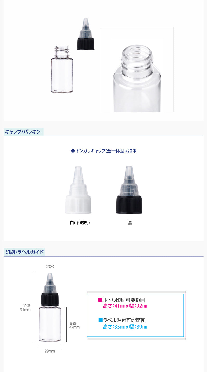 容量:20ml / 口径 : 20φ / 高さ:91mm / 直径 : 29mm