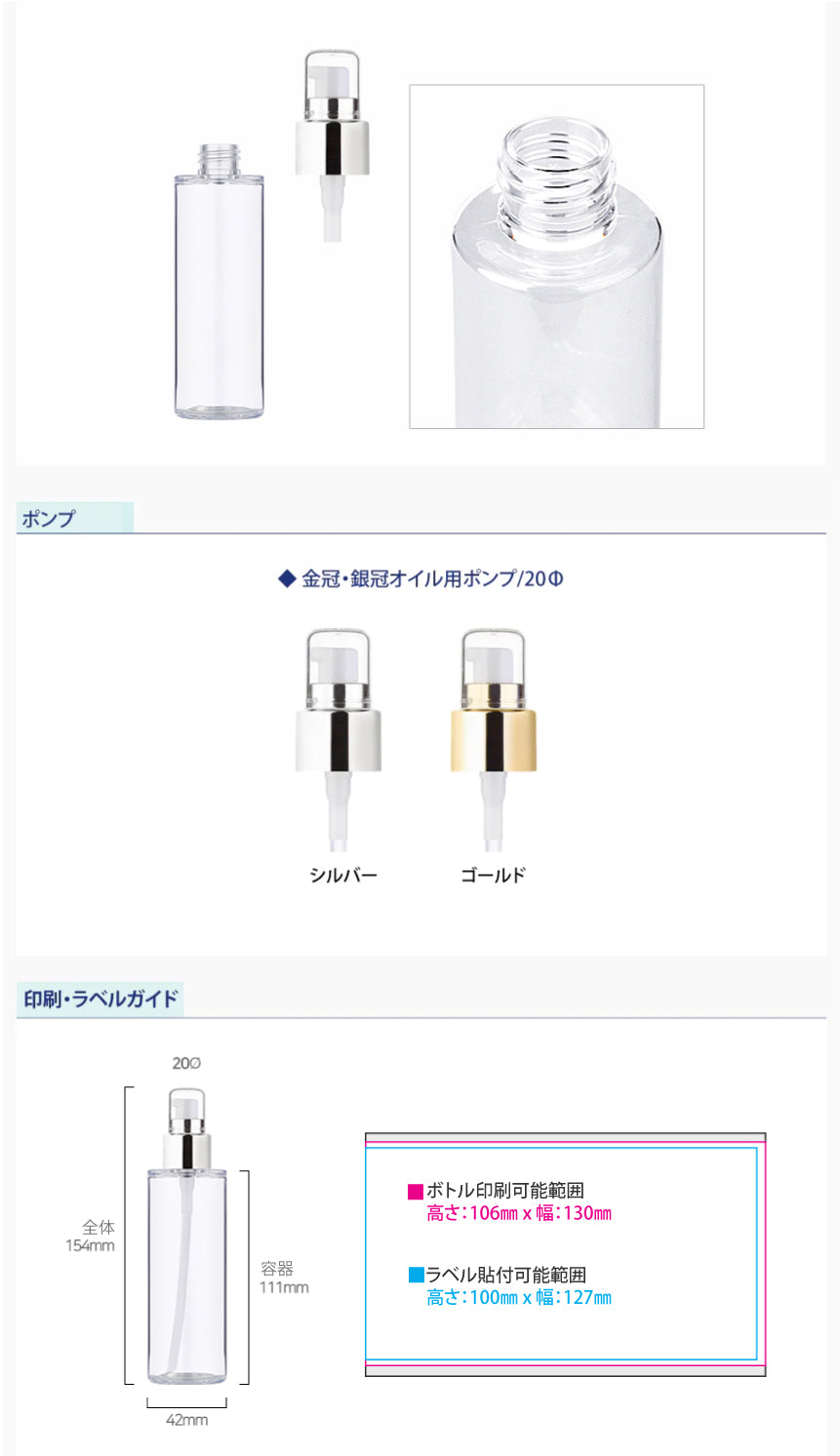 容量:100ml / 口径 : 20φ / 高さ:154mm / 直径 : 42mm