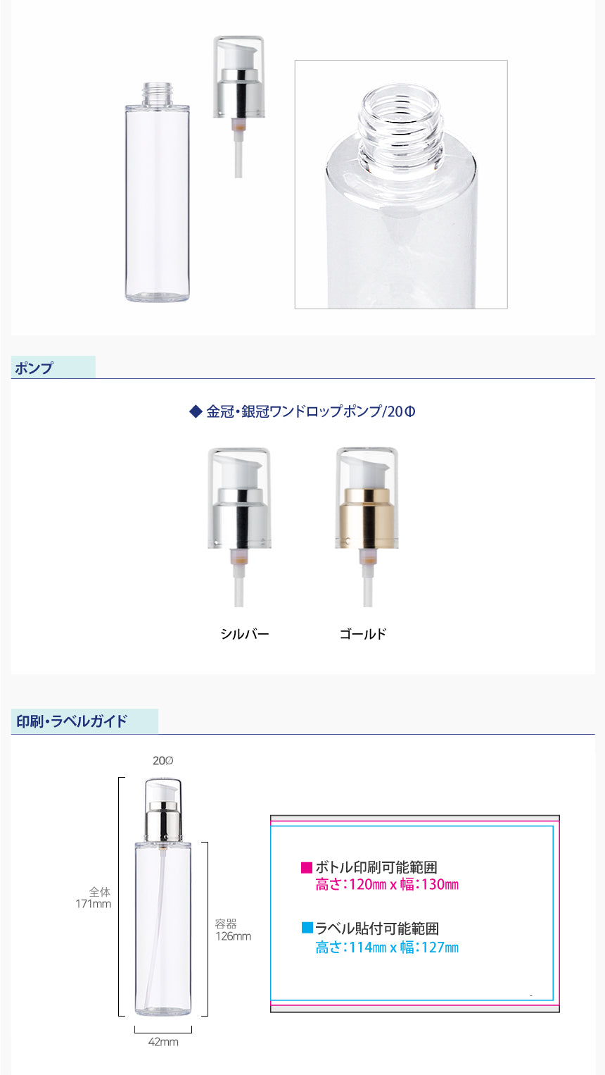 容量:120ml / 口径 : 20φ / 高さ:171mm / 直径 : 42mm