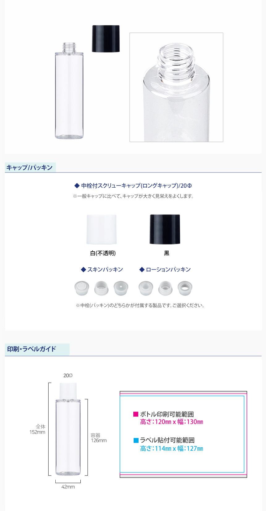 容量:120ml / 口径 : 20φ / 高さ:152mm / 直径 : 42mm